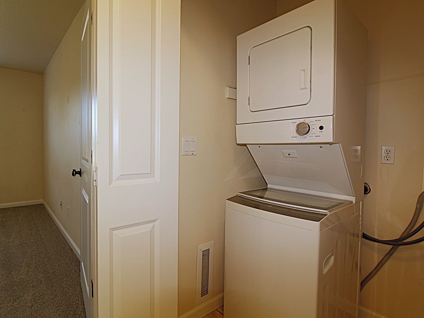 Yes. A stackable washer and dryer are provided.