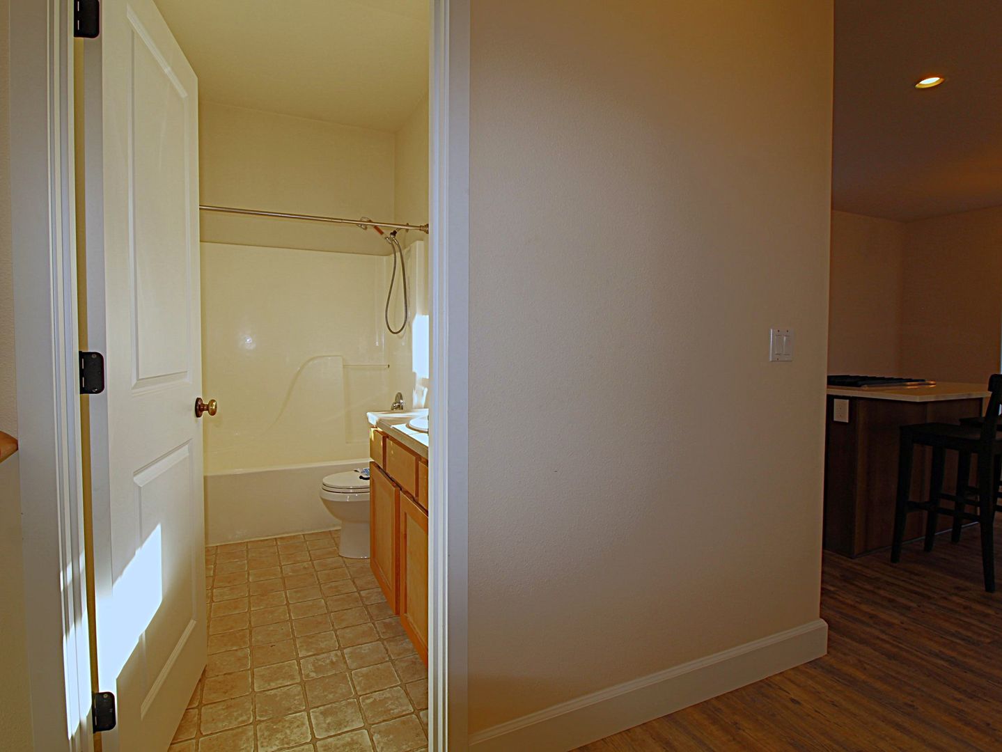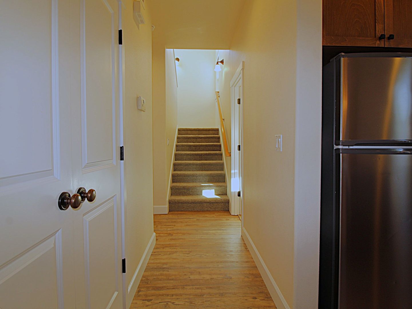 Inside, the layout is thoughtfully designed with one bedroom and a full bath conveniently located on the main level. The first floor features durable vinyl plank flooring, while the upstairs offers plush carpeting for a cozy feel. The partially fenced backyard provides the perfect spot for outdoor relaxation or play.
